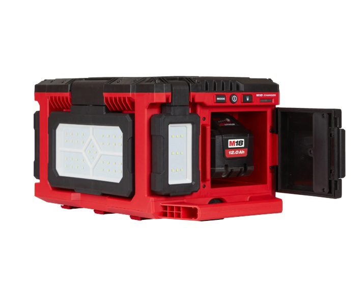Dotato di cavo per alimentazione a corrente e con funzione caricabatterie: ricarica tutte le batterie M18™ (quando alimentato a corrente) e dispositivi elettronici tramite USB.