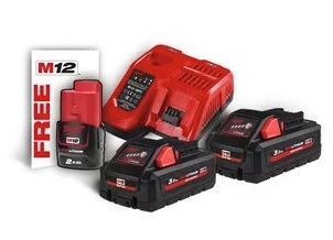 ENERGY KIT M18™ HIGH OUTPUT™ 2  BATTERIE 18V 3AH + 1 BATTERIA 12V 2AH + CARICABATTERIE - ART. MILWAUKEE 4933471071.