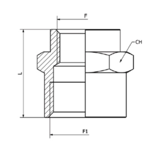 Manicotto ridotto cilindrico BSPP - metrico - Cod. AS5561412Filettatura BSPP cilindrica UNI-ISO228 (con O-Ring), BSPT conica UNI-ISO 7 teflonata, Metrica ISO/R 262 Robustezza meccanica