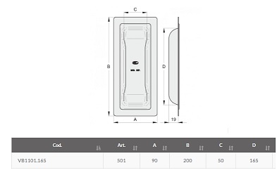 Maniglia ad incasso per portoni sospesi - Articolo 501. In lamiera zincata. Dimensioni come da schema.