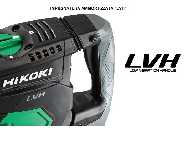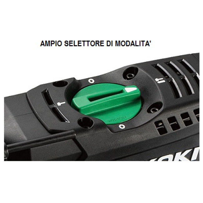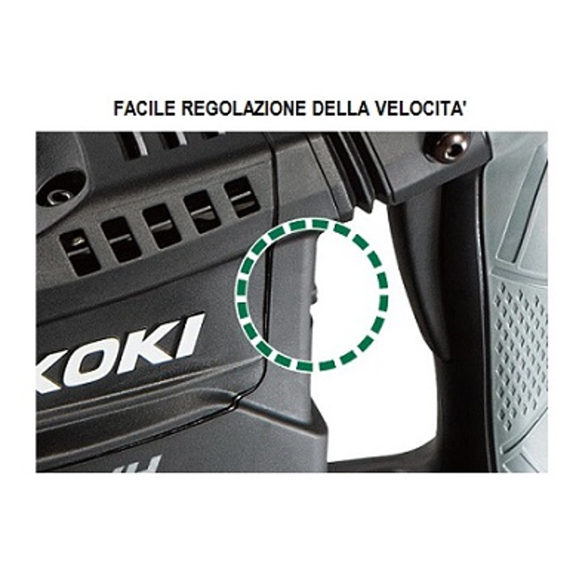 Martello combinato 15,5 Joule - 11,8 kg - Codice HiKOKI DH52MAWSZ. PUNTA NON COMPRESA. Martello combinato (perforatore-demolitore) super compatto, robusto e molto potente grazie al motore da 1.500W. Elevata capacità di demolizione e perforazione. Indicato per utilizzo in orizzontale, a parete. Impugnatura antivibrazioni "LHV", che permette un lavoro più confortevole per tempi di lavoro lunghi. L'ampio interruttore non stanca anche in caso di uso prolungato. Ampio selettore di modalità che permette una facile regolazione anche indossando i guanti. Il selettore è completamente incassato nel corpo del martello, permettendo lavorazioni a muro, senza rischi di rottura. 6 regolazioni di velocità. Frizione di sicurezza. Motore con spazzole.