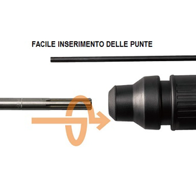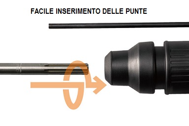 ApplicazioniPerforazione cieca/passante di muratura, pietra e calcestruzzo fino a 52 mm.Foratura calcestruzzo e cemento armato per posa di ancoranti e riprese di getto.Realizzazione di fori passanti con corone fino a 160 mm.Demolizione di pareti in muratura. Demolizione, ripristino e correzione di pavimentazioni in calcestruzzo e muratura. Creazione di aperture (passaggio tubature a parete/pavimento, infissi e serramenti). Realizzazione di tracce e scanalature su muratura per la posa di tubazioni, cavi e condutture. Rimozione piastrelle a pavimento e compattazione delle superfici.