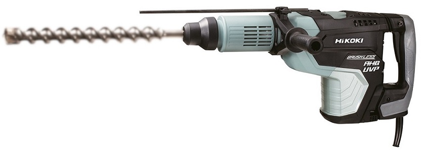 Martello combinato 11 Joule - 11,5 Kg. - Brushless - UVP - ZVRP - LA PUNTA NON E' COMPRESA. - Codice HiKOKI DH52MEYWSZ. Martello combinato dotato della innovativa tecnologia AC BRUSHLESS, perciò dotato di una sofisticata tecnologia elettronica che consente di ottenere incredibili performance di perforazione e scalpellatura. Il corpo motore in robusto alluminio (AHB), la leva cambio in posizione superiore ed il rinnovato design ultra-ergonomico consentono un feeling di lavoro insuperabile con prestazioni eccezionali!CaratteristicheE' dotato della super-innovativa tecnologia AC BRUSHLESS, che consente prestazioni e versatilità di lavoro eccezionali unite ad un elevato prolungamento della vita di servizio della macchina dovuto all'assenza delle spazzole ed alla gestione completamente elettronica di tutte le sue funzioni.Il motore BRUSHLESS è in grado di sopportare notevoli cadute di tensione, tipiche di un alimentazione con generatore non di eccellente qualità, oppure causate da un cavo di connessione alla rete elettrica troppo lungo, senza compromettere performance e durata di vita della macchina.L'attacco, di tipo SDS-max, è ad innesto rapido ed è dotato di un meccanismo che consente di posizionare lo scalpello con l'angolo di taglio voluto.Dotato di frizione di sicurezza, alta velocità di rotazione ed energia di battuta per singolo colpo, ben 18,8 Joule (EPTA)!!! La velocità è costante in ogni momento grazie al totale controllo elettronico e l'impostazione della velocità ottimale è effettuata tramite pulsantiera con display digitale.Dispone inoltre di un pulsante che, se premuto, consente la demolizione continua, pur rilasciando l'interruttore principale (ZVRP). E' dotato inoltre di protezione elettronica contro le sovracorrenti e lo stacco accidentale dell'alimentazione senza ripartenza in caso di interruttore premuto. I livelli di vibrazione sono molto bassi grazie alla tecnologia antivibrante UVP (solo 9.8 m/sec2).ApplicazioniApertura di fori nel cemento armato (max 52 mm) e apertura di fori ad ancoraggio (corona max 160 mm). Frantumazione di cemento, scanalatura, squadratura (per mezzo degli accessori opzionabili).