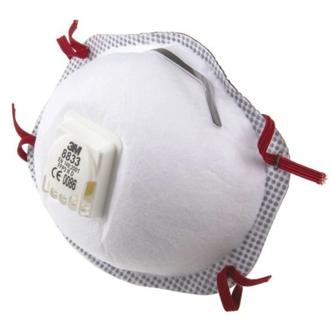 Respiratore facciale filtrante per polveri, fumi e nebbie. I respiratori per polveri Serie 8300 Comfort, sono progettati per offrire all'utilizzatore la massima comodità ed una straordinaria protezione contro polveri e nebbie, in ambienti industriali dove i lavoratori sono esposti a polveri e/o particelle liquide non volatili. Il morbido rivestimento fornisce immediatamente una sensazione di comfort e sicurezza mentre la robusta struttura rende i respiratori resistenti all'usura e al collasso. Caratteristiche Robusto guscio esterno che incrementa la resistenza al collasso. Stringinaso a M che ne facilita il modellamento e garantisce un maggior comfort a livello del setto nasale con meno punti di pressione. Elastici a trama intrecciata per una maggiore comodità a livello del collo, del viso e della testa, per una maggiore sensazione di sicurezza. Materiale filtrante 3M™ Advanced Electret garantisce una filtrazione efficace con una bassa resistenza respiratoria, fornendo elevate prestazioni di qualità. Rivestimento interno estremamente morbido che aumenta il comfort dei lavoratori. Valvola 3M™ Cool Flow™ con apertura più veloce in fase di esalazione, che favorisce il deflusso di aria calda, riducendo il calore all'interno del resporatore e con chiusura immediata in fase di inalazione, con minore probabilità di ingresso delle particelle contaminanti durante la fase di chiusura della valvola. Data di scadenza stampata sul lembo inferiore, per una maggiore sicurezza. Gli elastici colorati permettono una più facile identificazione del livello di protezione offerto dalle maschere: -elastici colore giallo per FFP1 -elastici colore blu per FFP2 -elastici colore rosso per FFP3