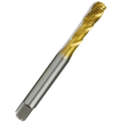 Maschi a macchina HSS+5%Co fori passanti - articolo Carmon M513. Per alluminio. Inclinazione elica 0°. Per fori passanti. Angolo del dente 60%. Filettatura metrica passo grosso. Tolleranza 6H (ISO DIN13).Finitura: Black.L' HSS, High Speed Steel, cioè acciaio rapido, è il più utilizzato tra tutti gli acciai legati per la realizzazione di maschi per metalli. Sono, infatti, acciai in grado di filettare i metalli a velocità di lavoro elevate senza perdere le loro caratteristiche di durezza.L'aggiunta di una percentuale di cobalto alla sua composizione (acciaio super rapido HSS-Co) rende questi maschi particolarmente resistenti alle alte temperature, senza comprometterne la tenacità e la resistenza all'usura.Raccomandato per l'alluminio. Trova applicazione per una vasta gamma di materiali: rame, ottone, bronzo, alluminio legato. Si consiglia sempre di ridurre la velocità di rotazione e di avanzamento in base all'elevata durezza del materiale e di tenere lubrificata la punta durante la filettatura.Normativa DIN 371.