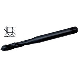 HSS-E. Tipo con elica a circa 35°, per filettature profonde superiori a 1 1/2 il diametro. Imbocco corto. Per metalli fino a R 900 N/mm², acciai legati e non legati, acciai INOX.$Fori ciechi profondi.$Vaporizzato.
