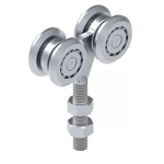 Monorotaia per carrello scorrevole - Articolo P.RF/45.3. Realizzata in acciaio zincato. Per portoni scorrevoli sospesi. Fissaggio a parete o a soffitto tramite adeguati supporti o saldatura.Dimensioni come da schema.