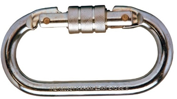 Moschettone, linea Akrobat. In acciaio con bloccaggio a vite. Apertura: 18 mm.Resistenza: 23 KN