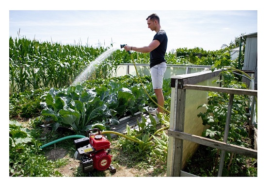 Codice prodotto: 113793. Pompa dalle elevate prestazioni per trasportare rapidamente grandi quantità di acqua. Adatta per una irrigazione mobile e flessibile indipendentemente dalla rete elettrica. Maniglia per un pratico trasporto. Particolarmente adatta per orti, grandi appezzamenti di terreno e case del fine settimana, come pure in caso di mancanza della corrente. Piedini regolabili grandi e larghi per un supporto sicuro. Tubo di aspirazione con filtro integrato NON incluso nella fornitura.