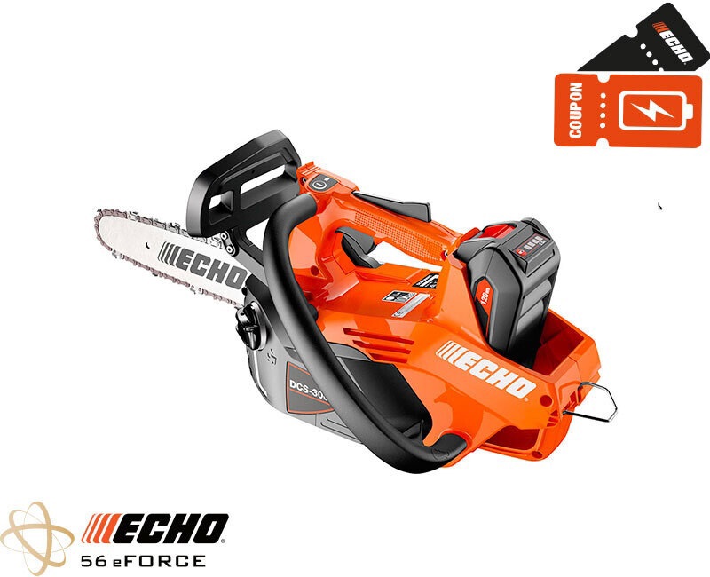 La nuova DCS-3000T è una motosega multiuso a batteria ECHO con impugnatura superiore maneggevole ed efficace grazie alla barra di taglio Speed Cut Nano da 30 cm