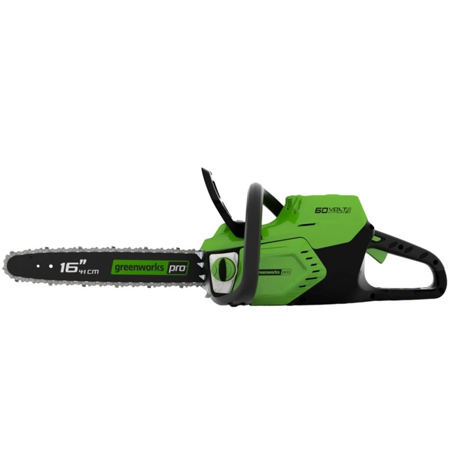 Motosega GD60CS40K2 A BATTERIA con barra Oregon da 40 cm. - Art.2001807UA. Questa motosega presenta una tecnologia motoristica avanzata e la più recente tecnologia delle batterie agli ioni di litio per offrire potenza e prestazioni paragonabili alla benzina. Motosega pratica da utilizzare, con la semplice pressione di un pulsante. La batteria agli ioni di litio G-MAX 60V offre bassi costi di gestione, bassi costi di manutenzione, senza fumi spiacevoli da respirare e senza emissioni nocive per l'ambiente. La motosega richiede solo una batteria. Una seconda può quindi essere tenuta sotto carica. CaratteristicheMotore Brushless DigiPro ad alte prestazioni, la scelta ideale per il professionista. Il motore Brushless ha molti vantaggi. Avendo meno parti che lavorano, le rotture sono molto ridotte rispetto a un motore tradizionale a spazzole. E' più affidabile, più economico e ha bisogno di poca o nessuna manutenzione. 30% di potenza in più. Rispetto ad un motore a scoppio, genera fino al 70% in meno di vibrazioni, zero emissioni di scarico, ridotto rumore e costi di esercizio. Freno catena elettronico. Cambio lama e regolazione catena senza utensili. Lubrificazione automatica e indicatore del livello del protettivo catena. Alimentazione a batteria. Le batterie Greenworks garantiscono alte prestazioni e lunga durata grazie all’elevata capacità di carica. Il caricabatteria è dotato di Led per indicare la ricarica in corso. 4 led sulla batteria indicano la carica residua.Le batterie possono essere ricaricate in qualsiasi momento “senza alcun effetto Memoria”.Le batteria sono sempre pronte per lavorare anche dopo mesi di stoccaggio. Batteria compatibile con tutti i prodotti Greenworks entro i 60V.Completo di batteria da 60V-2Ah e caricabatteria.Autonomia con batteria da 2Ah ca. 35 minuti.Autonomia con la batteria in dotazione da 2.0Ah: circa 150 tagli su trave da 10cm x 10cm su legni di durezza "normale" e catena con affilatura ottimale. L'autonomia ovviamente aumenta nel caso di utilizzo su legni teneri, diminuisce nel caso di taglio in condizioni gravose (legni "duri", secchi ecc...)Autonomia con batteria da 4Ah ca. 70 minuti (NON INCLUSA).