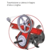 Motozappa Euro 5 EVO. Per utilizzare al meglio le motozappe, generalmente, con una prima passata si rompe la crosta superficiale, con la seconda passata si lavora in profondità il terreno. Tutti i modelli sono dotati di dischi laterali, che servono per manovrare la motozappa, delimitare la zona di lavoro e contenere l'uscita laterale del terreno. In presenza di terreno molto soffice i dischi laterali servono inoltre per far lavorare correttamente la macchina sul terreno senza che sprofondi. Se il terreno è molto duro è consigliabile fresare senza dischi per permettere ai coltelli di lavorare in profondità, così come con terreno umido che tende a intasare la fresa. Caratteristiche tecniche Motore Briggs & Stratton CR 950 series (208 cc OHV). Marcia avanti e retromarcia. Trasmissione a catena in bagno d'olio e cinghia. Avviamento a strappo con autoavvolgente. Disinnesto frese: a leva sulla stegola. Fresa: 50-75 cm. con carter di protezione e dischi laterali. Diametro fresa: 32 cm. Profondità di zappatura: 24 cm. Ruotino di trasferimento laterale. Stegole di guida registrabili in altezza. Prezzo promozionale fino ad esaurimento scorte.