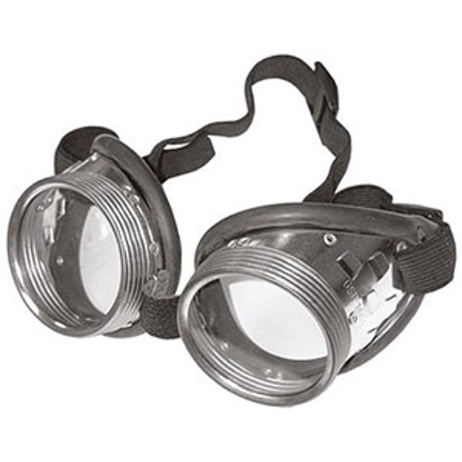 OCCHIALI DI PROTEZIONE; MONTATURA IN PLASTICA LEGGERA E INDEFORMABILE; LENTI VERDI DIN 5 IN VETRO