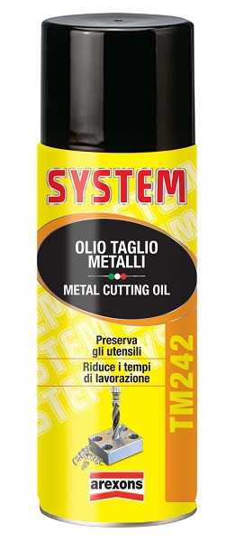 OLIO TAGLIO METALLI SYSTEM TM242 400 ML - Codice 4242. Prodotto con ottimo potere lubrificante è idoneo per la lavorazione dei metalli teneri quali alluminio e sue leghe, rame e sue leghe (bronzo e ottone). Adatto per la lavorazione dei metalli duri quali acciaio, acciaio inox, titanio e leghe speciali. Grazie a Olio taglio metalli System la lubrificazione è continua durante la lavorazione. Altissimo potere refrigerante: elimina distorsioni e difetti dovuti al calore. Contiene additivi E.P. (Estrema Pressione) per un'efficace azione antisaldante tra utensile e pezzo lavorato: prolunga la durata degli utensili. Aderisce perfettamente alle superfici, qualunque sia l'angolazione. Permette una perfetta visibilità del pezzo in lavorazione. Finiture migliori con tagli netti e precisi. Riduce gli scarti e i tempi di lavorazione. Protegge dalla corrosione. Esecuzione del lavoro rapida ed efficace. Non infiammabile. Caratteristiche tecnicheAspetto liquido viscosoColore paglierinoOdore caratteristicoPeso specifico Kg/l 0,866Propellente Anidride carbonica Modalità d'usoAgitare bene la bombola. Spruzzare direttamente sulla superficie da trattare da una distanza di 15 - 30 cm .