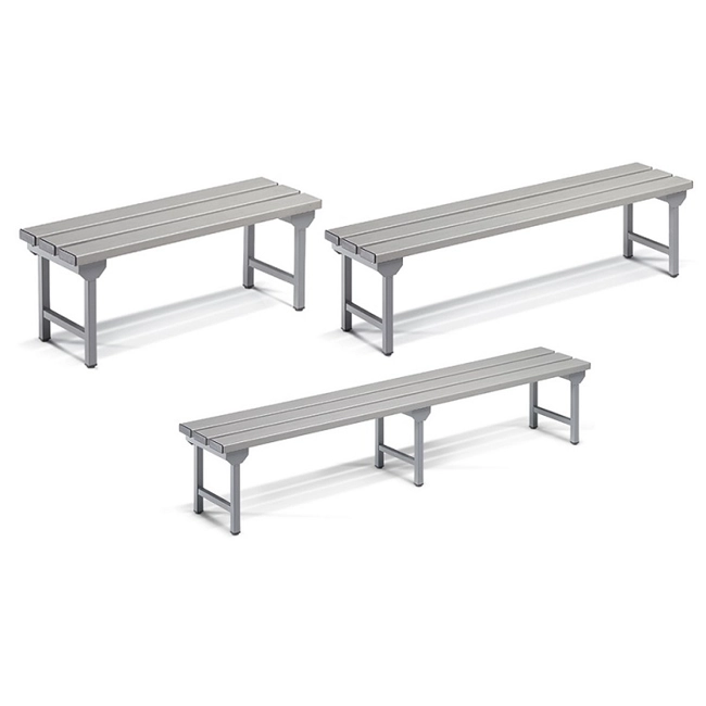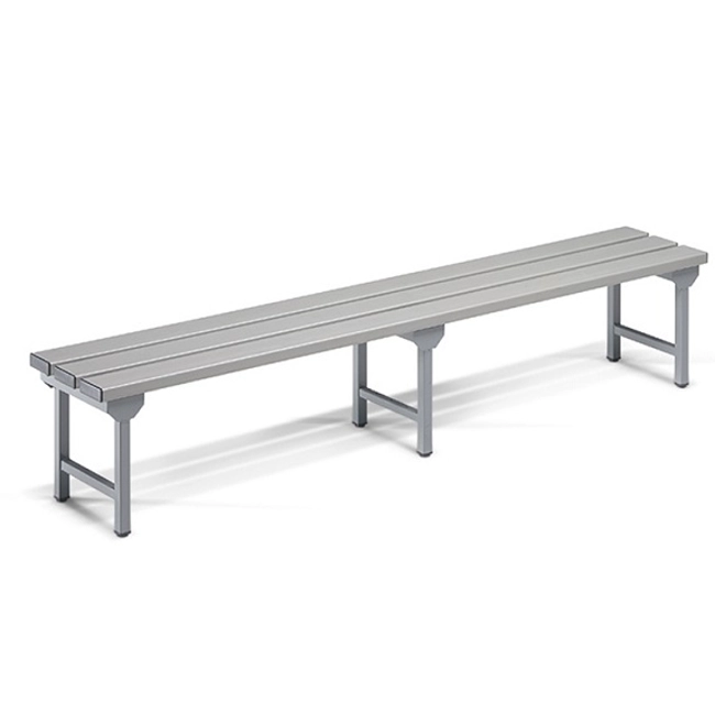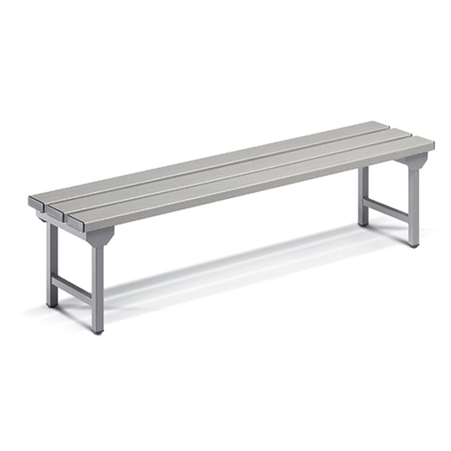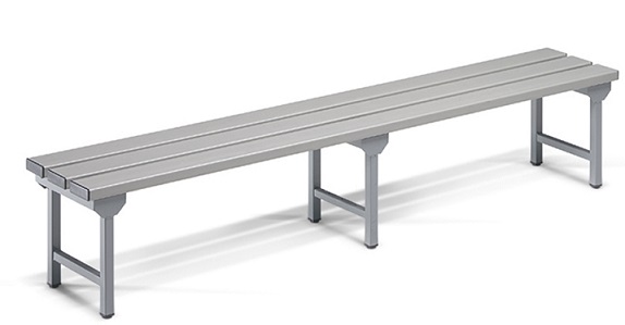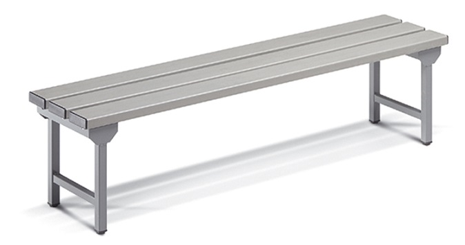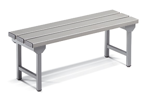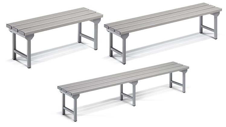 Realizzata in lamiera verniciata e legno rivestito in PVC. Struttura costituita da tubi di acciaio saldati con piedini regolabili e listelli in legno rivestiti in PVC. La panca per spogliatoio è un elemento che non può mancare all'interno degli spogliatoi di aziende, negozi, scuole o uffici. Seduta comoda e resistente per facilitare il cambio di abiti di utenti e dipendenti.