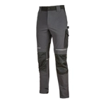 Pantalone in tessuto U-4 (U-Power 4 way stretch) - Codice U POWER PE145. Molto comodo, resistente, morbido sulla pelle, idrorepellente, traspirante e asciuga rapidamente. Dotato di due ampie tasche anteriori. L'elastico in vita propone un sistema innovativo di regolazione a scomparsa. Carrè posteriore accentuato per una maggior protezione della parte lombare. Profili in reflex anteriori e posteriori e nastro rosso/reflex su passante tubolare posteriore. Tasca laterale porta utensili, multifunzionale con porta badge a scomparsa. Due tasche posteriori di cui una con pattina e una con chiusura di sicurezza a velcro. Due tasche porta ginocchiera con ingresso facilitato e battitacco tutto in resistente polyoxford 600D. Due tasche, chiuse con zip in corrispondenza del tascone laterale e della tasca frontale destra. Triple cuciture. Bottone antigraffio, zip YKK, Slim Fit.