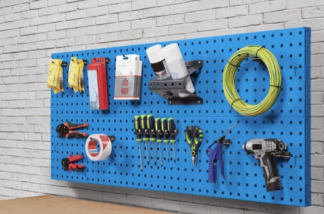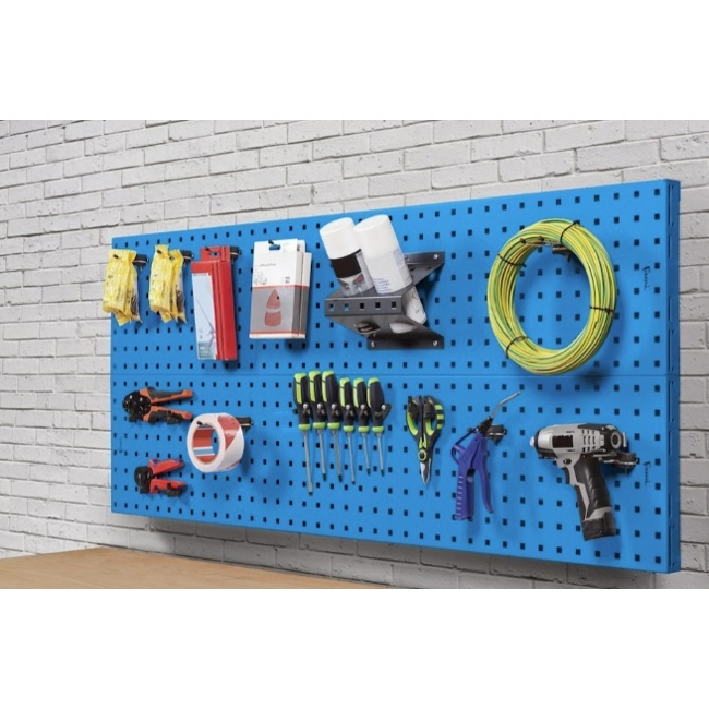 Parete porta attrezzi da 1500 mm. completa di accessori blu RAL5012
