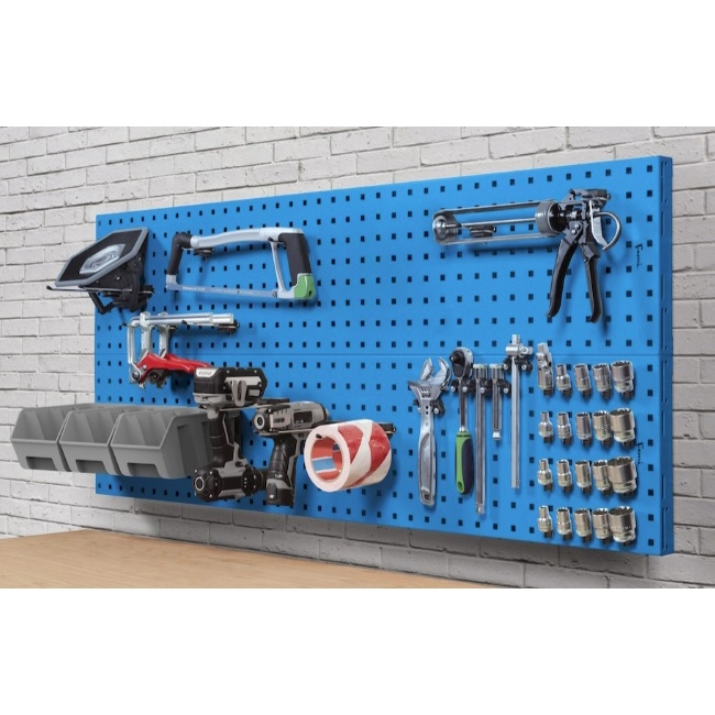 Parete porta attrezzi da 1500 mm. completa di accessori blu RAL5012