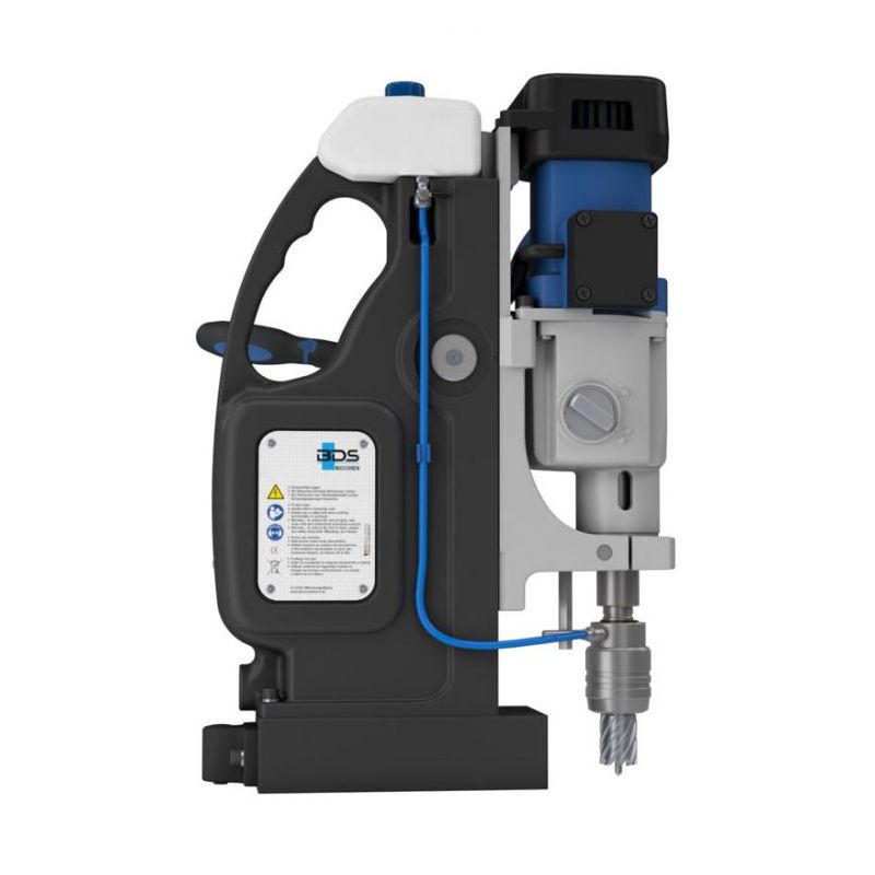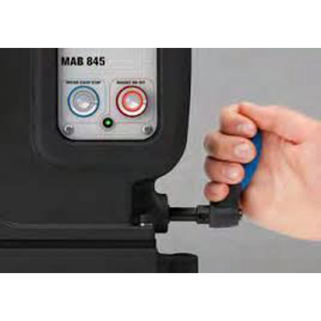 Trapano perforatore a base elettromagnetica serie "Profiplus" MAB 845 SB. Cod. 0072697. BASE GIREVOLE.Prestazioni ottimali e flessibilità per impieghi nell'impiantistica e costruzioni meccaniche. Un classico tra le grandi carotatrici magnetiche con attacco utensile MK3, per carotaggi fino a Ø 100mm e profondità di taglio 110 mm. Toccando fino a M30.Foratura con frese a corona su spessori 30, 55, 75 e 110 mm. Adatto all'impiego con punte coniche, alesatori, svasatori e maschiatori.Grazie alla tecnologia Swivel Base di BDS, che consente un movimento facile e preciso del trapano sul magnete, la macchina può essere ruotata di 30° a sinistra e a destra e spostata di 20 mm avanti e indietro.Il centraggio preciso è quindi notevolmente più semplice.La base girevole garantisce maggiore comfort e sicurezza, in particolare quando si lavora su una superficie verticale o sopratesta.CaratteristicheAttacco con sistema rapido Keyless.Protezione contro il surriscaldamentoIndicatore del magneteMandrino a cambio rapido SENZA CHIAVIRegolazione della base girevoleLubrificazione interna permanenteControlli di velocità e coppia variabiliMotore reversibileElettronica di controllo a onda interaInterruttore ON/OFF motore.Interruttore ON/OFF magnete.