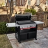 Piastra cottura a gas Weber Slate GPD da 76 cm nera con supporto - cod. 1500246. Esalta il tuo piacere di grigliare con l'innovativa Piastra Premium Weber® SLATE GPD da 76 cm, dotata di avanzato display digitale per monitorare la temperatura e una vasta area di cottura che raggiunge oltre i 260 °C, garantendo una distribuzione uniforme del calore su tutta la superficie per una cottura perfetta in ogni angolo della griglia.Lasuperficie antiaderente smaltata è pronta all'uso, consentendoti di preparare deliziosi hamburger, piatti gustosi e frutti di mare cucinati alla perfezione.Grazie alsistemaWeber Works, avrai tutto ciò di cui hai bisogno a portata di mano per cucinare, pulire e organizzare gli ingredienti, trasformando la tua grigliata in un'esperienza senza stress.Non perdere l'opportunità di elevare il tuo livello di grigliata con la Piastra Premium Weber® SLATE GPD!Caratteristichen.2 ripiani laterali.n.2 rotelle orientabili.n.2 rotelle bloccanti.n.2 ganci per utensili.Superficie di cottura ghisa smaltata.n.3 bruciatori in acciaio inox 10,06 Kw.Display digitale della temperatura.Funzionamento con gas GPL (bombola ricaricabile non fornita).Coperchio in acciaio smaltato.Spazio per bombola di propano all'interno dell'armadietto. Vaschetta di raccolta extra-large per raccogliere il grasso.Ripiano portautensili (include un tappetino lavabile in lavastoviglie che protegge il ripiano dallo sporco mentre si cucina).