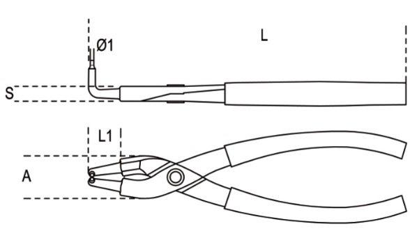 Pinza per anelli seeger, becchi piegati a 90° art.1034