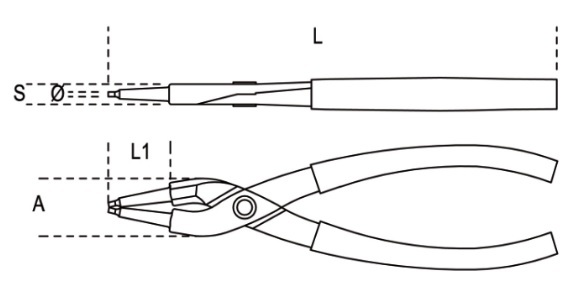 Pinza a becchi diritti per anelli elastici di sicurezza art.1032