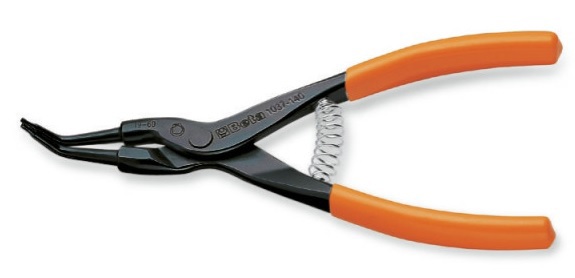 Pinze a becchi piegati a 45° per anelli elastici di sicurezza per alberi manici ricoperti in PVC. La pinza seeger Beta 1037 è realizzata in acciaio per molle, materiale che garantisce un'ottima resistenza alla rottura.