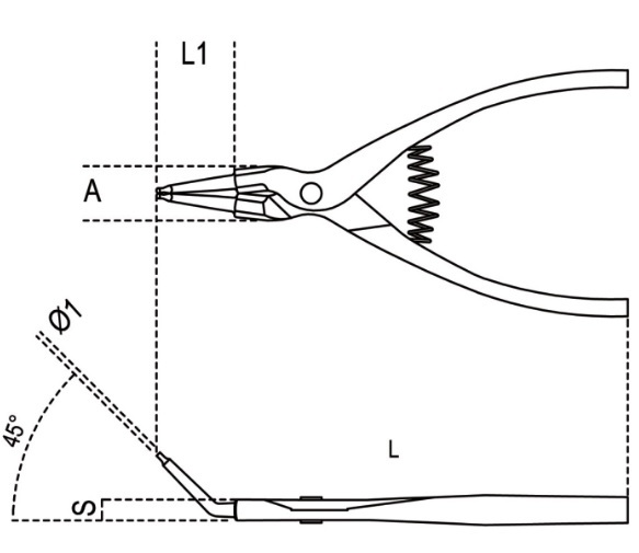 Pinze a becchi piegati a 45° per anelli elastici art.1033