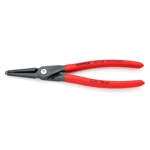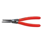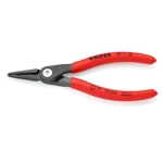 Pinza di precisione per anelli di sicurezza bonderizzata grigia Knipex - Art.4811. DIN 5256 C. Per anelli di sicurezza interni a fori. Punte dritte. Questa pinza è munita di punte inserite a pressione in acciaio ad alta densità. Queste, offrono un elevato livello di protezione da sollecitazioni e sforzi eccessivi, ad esempio durante la rimozione di anelli bloccati. Le ampie superfici di appoggio e la posizione delle punte rendono più difficile il rimbalzo degli anelli. Per le punte viene utilizzato acciaio per molle ad alta densità con una superficie senza scanalature. Ciò aumenta la resistenza dei puntali a sollecitazioni dinamiche e statiche. Le punte sono più stabili del 30% rispetto alle pinze tradizionali per singolo sovraccarico, pur consentendo una buona accessibilità durante il montaggio. Sottoposta a deformazione dinamica, la capacità di resistenza delle punte è fino a 10 volte maggiore. Le punte, infine, sono anticaduta. Caratteristiche tecnicheArticolazione a vite (alta precisione e movimento ottimale). Manici con rivestimento in resina sintetica antiscivolo. Corpo pinza in acciaio al cromo vanadio, temprato a olio e bonderizzato. Punte inserite, filo di acciaio per molle, estruso.