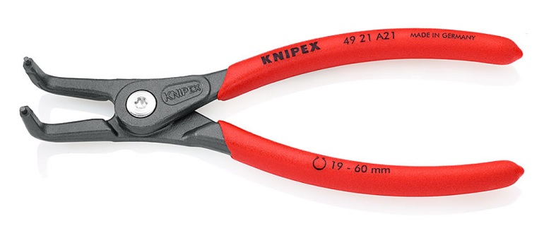 Pinza di precisione per anelli di sicurezza bonderizzata grigia Knipex - Articolo Knipex 4921. Per anelli di sicurezza esterni su alberi. Punte piegate a 90°. Questa pinza è munita di punte inserite a pressione in acciaio ad alta densità. Queste, offrono un elevato livello di protezione da sollecitazioni e sforzi eccessivi, ad esempio durante la rimozione di anelli bloccati. Le ampie superfici di appoggio e la posizione delle punte rendono più difficile il rimbalzo degli anelli. Per le punte viene utilizzato acciaio per molle ad alta densità con una superficie senza scanalature. Ciò aumenta la resistenza dei puntali a sollecitazioni dinamiche e statiche. Le punte sono più stabili del 30% rispetto alle pinze tradizionali per singolo sovraccarico, pur consentendo una buona accessibilità durante il montaggio. Sottoposta a deformazione dinamica, la capacità di resistenza delle punte è fino a 10 volte maggiore. Le punte, infine, sono anticaduta. Caratteristiche tecnicheArticolazione a vite (alta precisione e movimento ottimale). Ampia superficie di appoggio sulle punte: nessuna deformazione degli anelli, montaggio semplice. Manici con rivestimento in resina sintetica antiscivolo. Corpo pinza in acciaio al cromo vanadio, temprato a olio e bonderizzato. Punte inserite, filo di acciaio per molle, estruso. Molla interna, posizione protetta dentro l'articolazione a vite. Non ostacola il lavoro, non si sporca e non si perde. DIN 5254 B