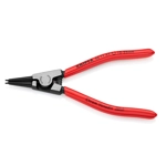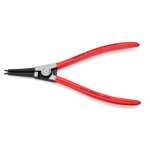 Pinza per anelli di sicurezza bonderizzata nera Knipex. DIN 5254 A. Per anelli di sicurezza esterni su alberi. Caratteristiche Manici con rivestimento in plastica. Corpo pinza e becchi in acciaio al cromo vanadio, forgiato, temperato ad olio. Forma robusta, forgiata. Punte dritte, resistenti, antiscivolo.