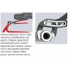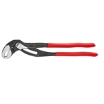 Pinza regolabile per tubi e dadi KNIPEX Alligator® - Articolo Knipex 8801. DIN ISO 8976. Caratteristiche Acciaio al cromo vanadio, forgiato, temperato ad olio a gradini. Pinza che garantisce maggiori prestazioni e comfort rispetto alle tradizionali pinze regolabili per tubi e dadi della medesima lunghezza. Regolazione a scatto su 9 posizioni per una capacità di presa superiore del 30%. Buona accessibilità al pezzo grazie alla forma affusolata della zona della testa e dell'articolazione. Autoserrante per tubi e dadi: nessuno slittamento sul pezzo da stringere e minimo sforzo di lavoro. Superfici delle ganasce con denti trattati con speciale tempera, durezza dei denti ca. 61 HRC: presa sicura per un'elevata stabilità. Cerniera passante: doppia guida per un'elevata stabilità. Struttura robusta non suscettibile allo sporco; particolarmente idonea per lavori in impieghi esterni. Con fermo di contrasto per evitare lo schiacciamento accidentale.