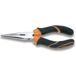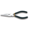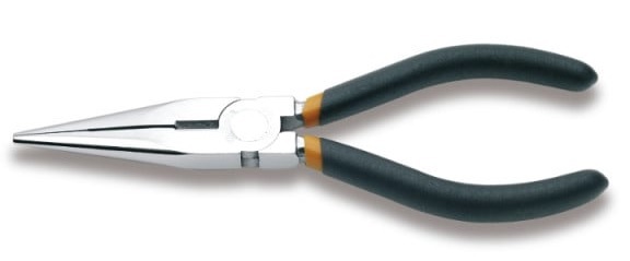 Pinze a becchi mezzotondi lunghissimi diritti zigrinati, cromate, manici ricoperti con 2 strati di PVC antiscivolo.