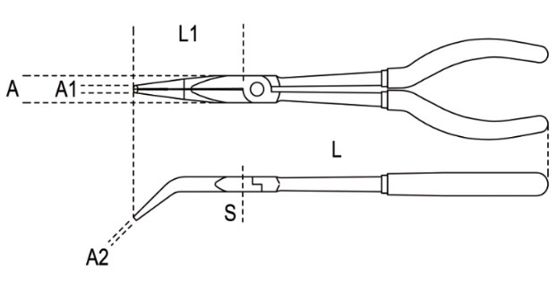 Pinze lunghe becchi mezzotondi 45° L/B art.1009L/B