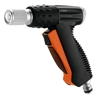 Lancia Metal-Jet Confort - art. Claber 9567. Lancia a pistola con componenti in metallo cromato resistente e inalterabile a ogni intemperia. Impugnatura anatomica gommata che garantisce un "grip" perfetto anche con le mani bagnate. Comodo meccanismo anteriore a pulsante per l'apertura e la chiusura del flusso. Manopola posteriore per regolare la portata dell'acqua. Corpo ricoperto in gomma con funzione antiurto. Getto regolabile a piacere, da tutto chiuso (concentrato) a tutto aperto (diffuso a ventaglio).