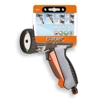Pistola multifunzione con nuova impugnatura anatomica gommata per una presa sempre perfetta in ogni condizione d'uso. Comodo meccanismo anteriore a pulsante per l'apertura e la chiusura del flusso. Il pulsante posteriore permette di aprire o chiudere l'acqua con un dito ed anche per regolare la portata, basta una mano.Ghiera in gomma con funzione antiurto, apribile, ispezionabile e pulibile. Basta ruotare la ghiera in gomma per scegliere fra 4 tipi di getti d'acqua: doccia, concentrato, diffuso a ventaglio e nebulizzato.Piastra forata in acciaio inox.
