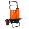 Pompa a batteria 15 L con trolley Stocker - Codice 1247.Questa pompa a zaino elettrica offre praticità e versatilità, grazie al suo design ergonomico e al trolley incluso che ne facilita il trasporto.Una soluzione perfetta per l'applicazione di agenti liquidi di protezione su piante di medie dimensioni, in giardini familiari e vigneti, e per fertilizzare.Dotata di una batteria al litio ricaricabile da 12V 10Ah e un carica batteria incluso, questa pompa assicura fino a 4 ore di autonomia con una sola carica.Il suo serbatoio da 15 litri, realizzato in plastica robusta, offre una capacità ottimale per le tue esigenze di fertilizzazione e protezione delle piante.La pompa è completa di tubo flessibile da 3 metri, lancia in fibra di vetro e lancia in alluminio, garantendo una distribuzione uniforme degli agenti liquidi.Il misuratore di pressione integrato ti permette di controllare con precisione la quantità di liquido erogato, mentre il filtro e il tappo agganciato assicurano un utilizzo sicuro e privo di intoppi.Con un peso di soli 11.264 g e le dimensioni del trolley di 54 x 45 x h 99 cm, questa pompa è facile da manovrare e da conservare.