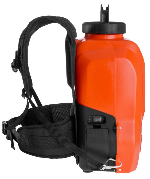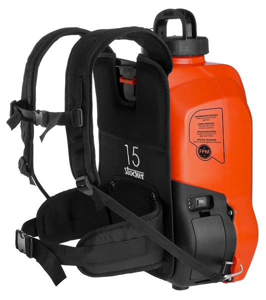 Pompa a zaino 15 L con batteria LIi-Ion 18 volt 2,2 Ah - Codice 227.La pompa a zaino elettrica è ancora più comoda e performante: è dotata di un innovativo bastino ergonomico, ispirato agli zaini da escursionismo, con spallacci imbottiti e cinghie regolabili per la massima stabilità del carico su ogni tipo di corporatura e una miglior distribuzione del peso.Questa pompa è la soluzione perfetta per trattamenti prolungati in oliveti efrutteti più estesi.Un connubio di comfort , grazie al sistema a zaino ergonomico, flessibilità e prestazioni elevate.La potente batteria al litio da 18 Volt, estraibile ed inseribile in pochi secondi grazie al sistema fast click-in, consente inoltre di ottenere elevate prestazioni durante il lavoro.La pressione è regolabile su due livelli, 3 o 5 bar, per una maggiore flessibilità.Grazie alle guarnizioni in FPM questa pompa è adatta anche all'utilizzo di prodotti aggressivi.Con il getto diretto permette di spruzzare fino a 9 metri di distanza.Autonomia batterie 3,5 ore, tempo di ricarica 2 ore
