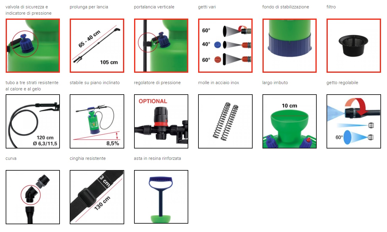 Pompe ad accumulo di pressione dalle eccellenti caratteristiche tecniche. Le diverse capacità e la ricca dotazione di accessori le rendono ideali per un utilizzo molteplice: nella cura di giardini, orti, frutteti e serre. Stabile su piano inclinato. La pompa può essere resa elettrica, allegerendo il lavoro dell'operatore, applicando il Kit pompa elettrica art.3512. Kit pompa elettrica