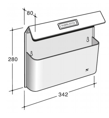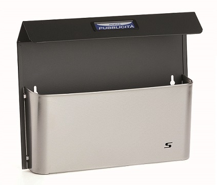 Cesto portapubblicità Bimetal con tetto. Grazie al tetto parapioggia il contenuto rimane riparato. E' la soluzione per raggruppare la pubblicità, separandola dalla corrispondenza ordinaria. Frontale in lamiera di acciaio inox antigraffio DTL (Decorato Tela di Lino).Retro in acciaio verniciato color grigio ferro. Codice Silmec 41-515.84