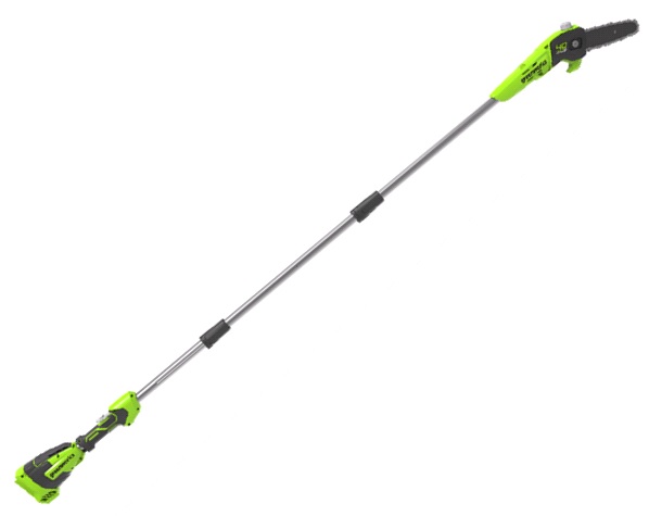 Potatore A BATTERIA - Art.GWM1401107. Permette di lavorare da terra in tutta sicurezza. La batteria agli ioni di litio G-MAX 40V offre bassi costi di gestione, bassi costi di manutenzione, senza fumi spiacevoli da respirare e senza emissioni nocive per l'ambiente. Il potatore richiede solo una batteria. Una seconda può quindi essere tenuta sotto carica. Caratteristiche Grazie alla sua asta, si può raggiungere una lunghezza totale di 2,5 m. e quindi raggiungere i rami senza sforzo. Alimentazione a batteria. Le batterie Greenworks garantiscono alte prestazioni e lunga durata grazie all'elevata capacità di carica. Il caricabatteria è dotato di Led per indicare la ricarica in corso. 4 led sulla batteria indicano la carica residua. Le batterie possono essere ricaricate in qualsiasi momento "senza alcun effetto Memoria". Le batterie sono sempre pronte per lavorare anche dopo mesi di stoccaggio. Batteria compatibile con tutti i prodotti Greenworks entro i 40V.