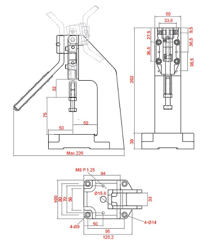 Pressa manuale - spintore 32 mm. - portata 610 Kg. - Articolo Clamptek CH-30600PR.