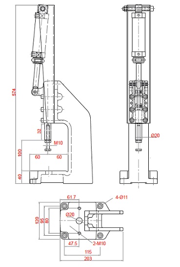 Pressa pneumatica - portata 1220 Kg. - Articolo Clamptek CH-31200PR-A.