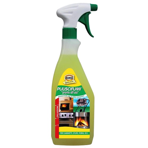 Puliscifumi superpulitore di fuliggini e fumi - Codice MD2PF7.PULISCIFUMI è il pulitore forte particolarmente efficace per la pulizia di superfici sporche da fumo, fuliggine e incrostazioni di bruciato.Grazie alla sua formulazione bilanciata con detergenti e tensioattivi biodegradabili oltre il 90%, è indispensabile per tutte le pulizie domestiche, laddove i normali detergenti risultino poco efficaci.PULISCIFUMI è pronto all'uso nell'apposito spruzzatore con schiumatore che garantisce una maggiore aderenza nella pulizia in verticale. è efficace e rapido anche nella pulizia di residui secchi.Eccezionale per vetro-ceramico.