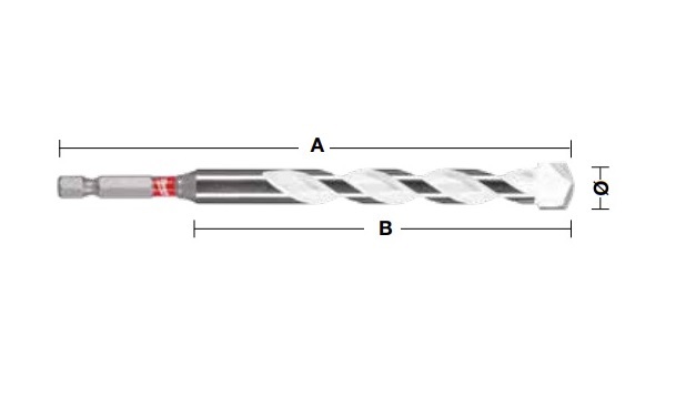 Tagliente al carburo di Tungsteno (TCT) che permette di forare su cemento, mattoni, tegole, blocchi cemento, metallo sottile, piastrelle ceramiche di durezza medio morbida, tutti i tipi di legno e PVC.