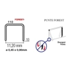 Punti metallici tipo 110 Forest - Codice 1101205. Tutti i punti metallici ro-ma Maestri si distinguono per la qualità della materia prima e per l'eccellenza di fabbricazione.La particolare accuratezza dell'angolo di piega, la simmetria del punto, il taglio delle punte, consentono una corretta penetrazione e costituiscono la garanzia qualitativa necessaria al buon funzionamento delle fissatrici. L'uso del punto originale ro-ma Maestri è sempre da preferirsi.La punta "FOREST" garantisce una ottima penetrazione ed un eccellente tenuta del punto nel legno.