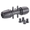 Raccordo 1/2" a 4 uscite da 1/4". Per portare fino a quattro gocciolatori all'interno di grandi vasi o terrine. Ideale per gli impianti di microirrigazione di aiuole o bordure in quanto le linee capillari derivano da un'unica presa d'acqua. Tappini in dotazione per la chiusura delle uscite inutilizzate. Perfetta tenuta d'acqua.