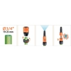 Raccordo automatico con Aquastop per tubi da 3/4". Diametro interno 19 mm. Diametro esterno 25 mm. Si monta alla fine del tubo. Disinnestandolo il flusso dell`acqua si blocca. Il massimo della praticità, il massimo della durata: la ricerca Claber dà il meglio di sé anche nei raccordi Quick-Click® con o senza sistema Aquastop. Assolutamente inossidabili in quanto privi di parti metalliche. Resistono agli urti, agli agenti atmosferici, ai raggi UVA e alle pressioni più elevate, fino a 40 bar, ben oltre il normale utilizzo domestico. La loro molla interna, un brevetto esclusivo Claber, può compiere fino a 1,5 milioni di "click" senza la minima rottura. In più sono compatibili con altri sistemi, perché adottano il passo standard usato in tutto il mondo.