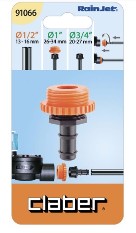 Per collegare il tubo collettore da 1/2" (13-16 mm.) a una presa con filetto femmina 3/4" (20-27 mm.) o 1" (26-34 mm.) (esempio: elettrovalvole)