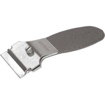 Tipo in metallo con impugnatura in gomma. Particolarmente indicato per vetrai, verniciatori, carrozzieri, ecc, per staccare adesivi, etichette, vernice, ecc. da superfici lisce come parabrezza, vetri, cristalli, marmi, piastrelle, ecc. Lama diritta, inclinata, larghezza mm 100.